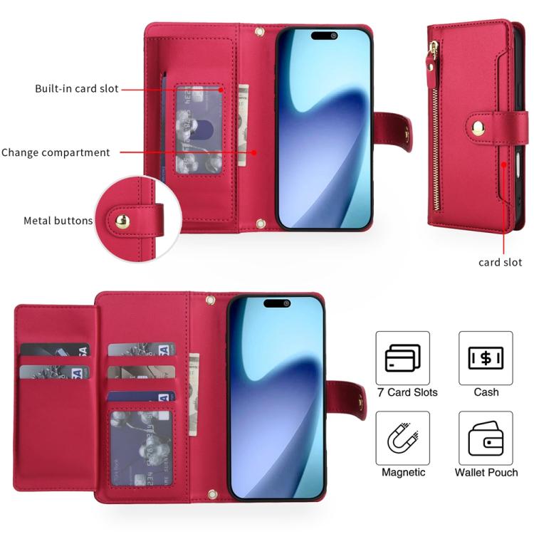 Funda de cuero con siete ranuras para tarjetas y cremallera para iPhone Air con cordón (roja)