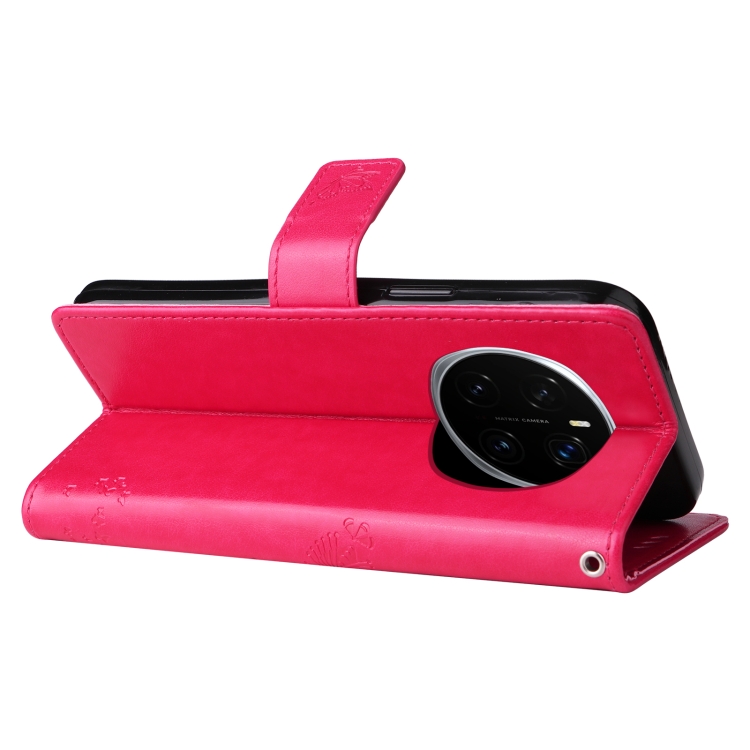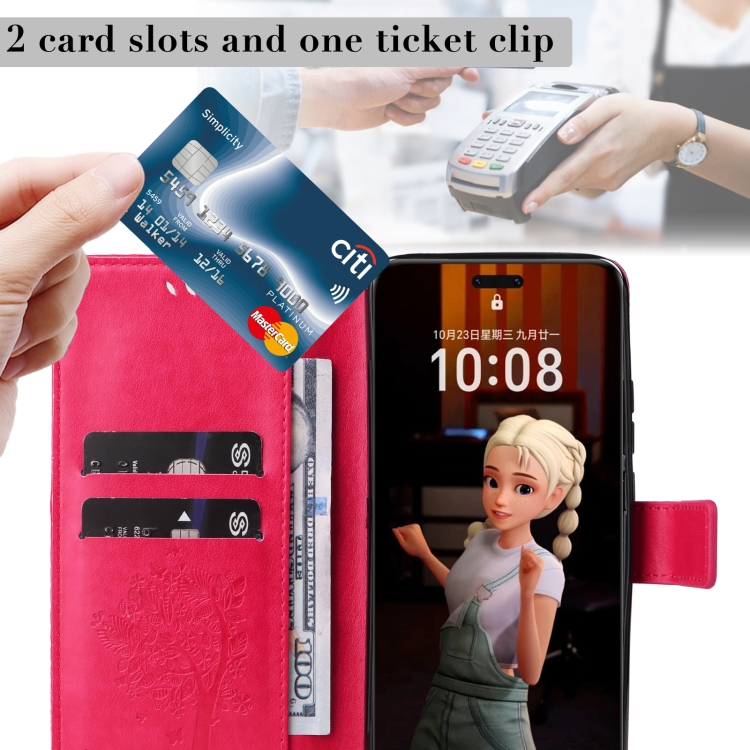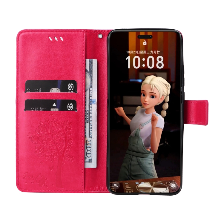 Funda de Cuero con Tapa para Honor Magic7 Pro con Diseño de Árbol y Gato (Rosa Rojo)