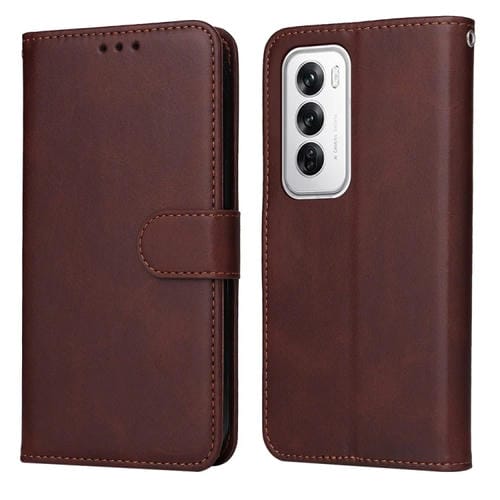 Funda de Cuero con Tapa con Textura Clásica de Becerro para Oppo Reno12 5G Global (Marrón)
