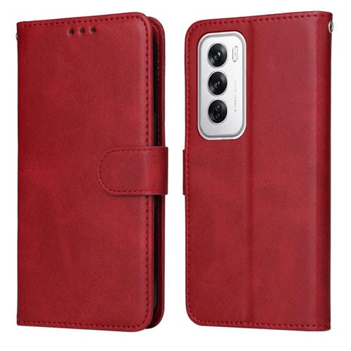Funda de Cuero con Tapa con Textura Clásica de Becerro para Oppo Reno12 5G Global (Rojo)