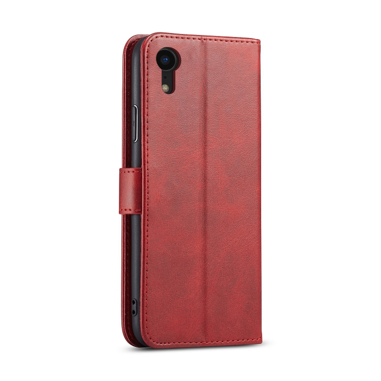 Funda de Cuero iPhone Xr Tapa Horizontal Hebilla Textura Becerro Soporte Ranuras Tarjetas (Rojo)