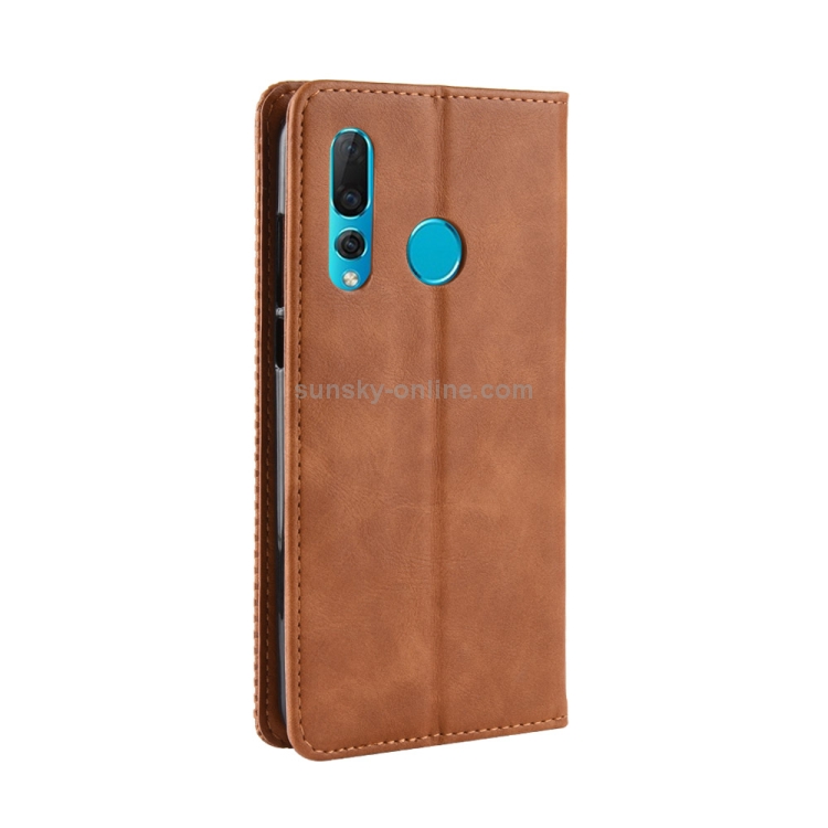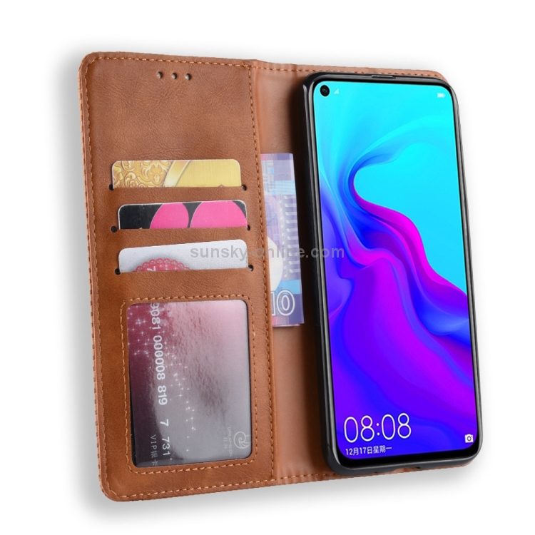 Funda de Cuero con Tapa Horizontal para Huawei Nova 4 con Soporte y Ranuras para Tarjetas (Marrón)