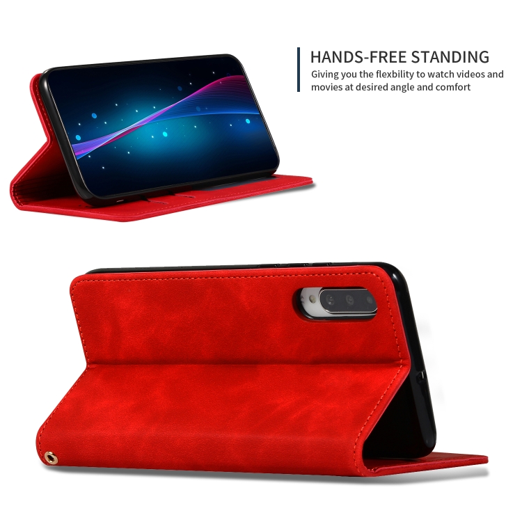 Funda de Cuero con Tapa Horizontal Magnética Retro Skin Feel Business para Huawei P30 (Rojo)