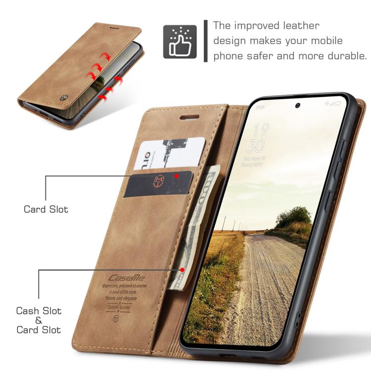 Funda de Cuero con Tapa Horizontal Multifuncional Caseme 013 para Oppo Reno13 Global (Marrón)