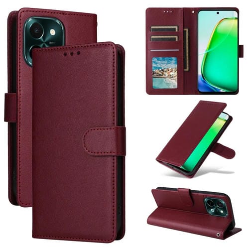 Funda de Cuero con Tapa Horizontal Multifuncional para Teléfono Vivo Y28 4G con Ranura para Tres Tarjetas (Rojo Vino)