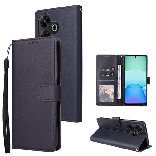 Funda de Cuero con Tapa Horizontal Multifuncional para Teléfono Xiaomi Redmi 13 4G con Ranura para Tres Tarjetas (Azul Marino)