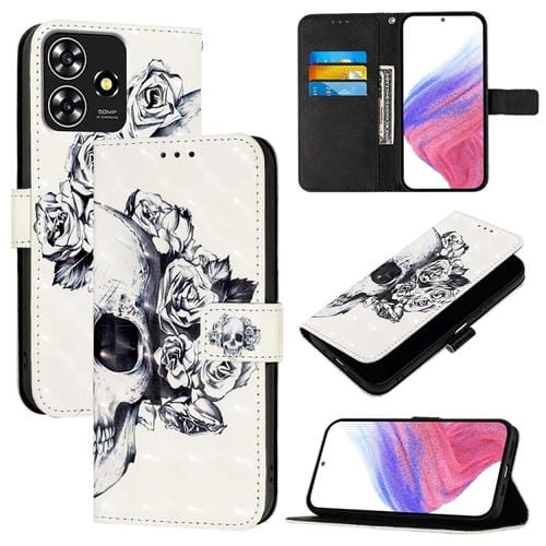 Étui en cuir à rabat horizontal de peinture 3D pour ZTE Blade A73 4G (crâne)