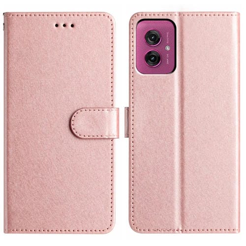 Funda de Cuero con Tapa Horizontal y Textura de Seda para Motorola Moto G55 (Oro Rosa)