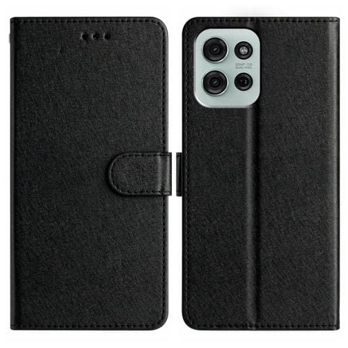 Funda de Cuero con Tapa Horizontal y Textura de Seda para Motorola Moto G75 (Negro)