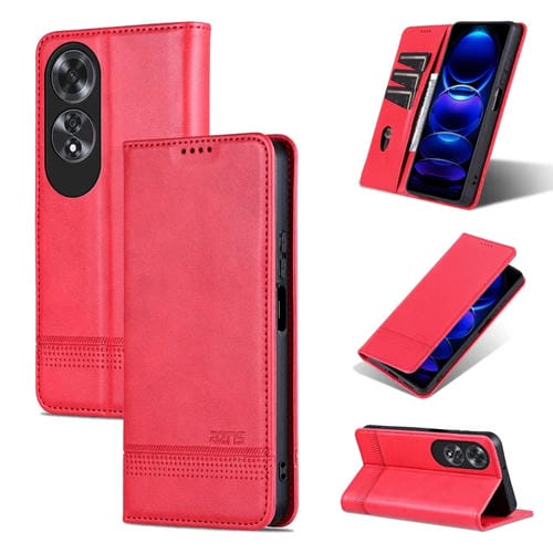 Funda de Cuero con Tapa Magnética con Textura de Piel de Becerro Azns para Oppo A60 4G (Rojo)