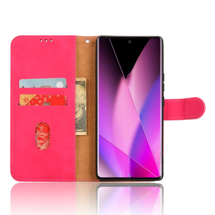 Funda de Cuero con Tapa Magnética para Infinix Zero 40 5G con Tacto de Piel (Rosa y Rojo)