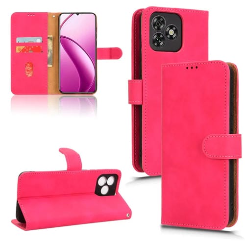Funda de Cuero con Tapa Magnética para Teléfono Oukitel C53 Skin Feel (Rosa Rojo)
