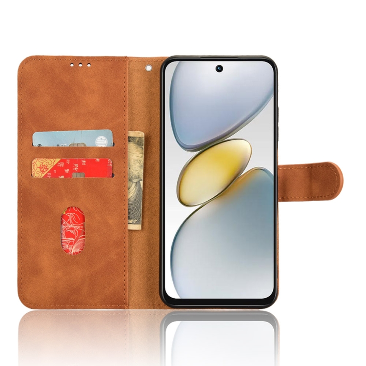 Funda de Cuero con Tapa Magnética para Teléfono Tecno Pop 9 Skin Feel (Marrón)