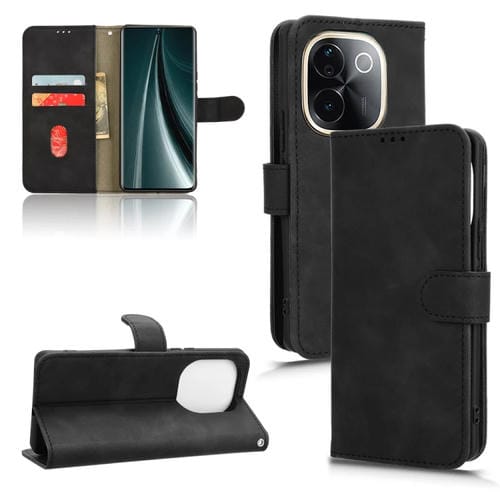 Funda de Cuero con Tapa Magnética para Teléfono Vivo T3 Pro 5G con Tacto de Piel de la India (Negro)