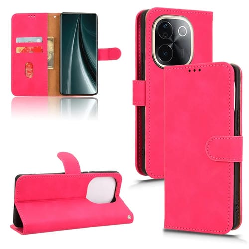 Funda de Cuero con Tapa Magnética para Teléfono Vivo T3 Pro 5G con Tacto de Piel de la India (Rosa Rojo)