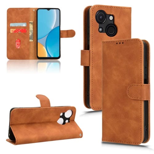 Funda de Cuero Itel A50C con Tapa Magnética y Tacto Agradable (Marrón)