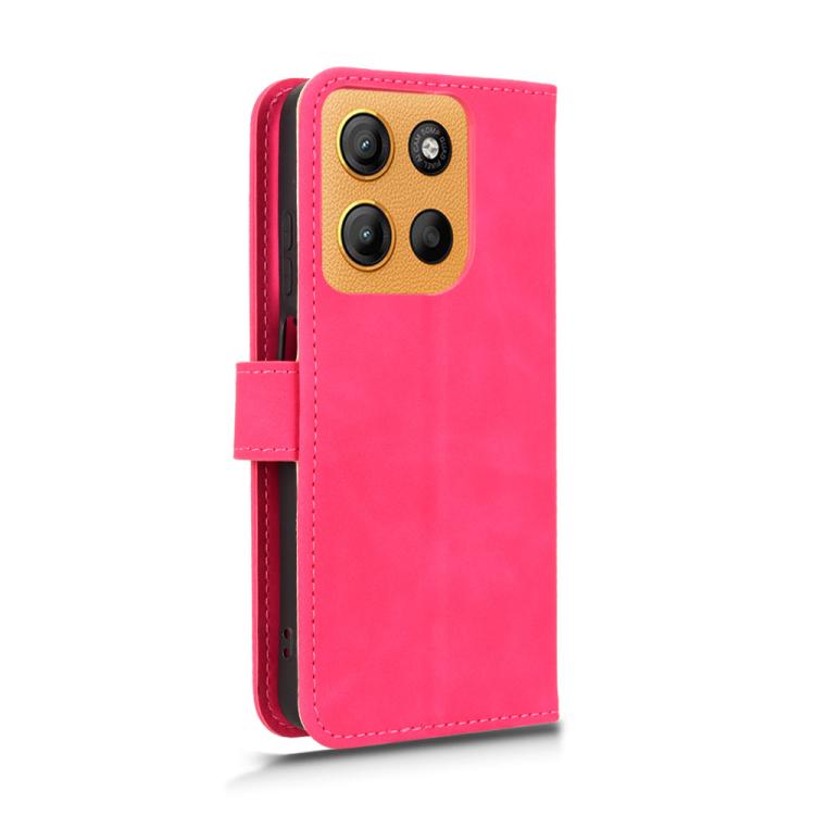 Funda de Cuero con Tapa Magnética para Motorola Moto G15 4G (Rosa y Rojo)