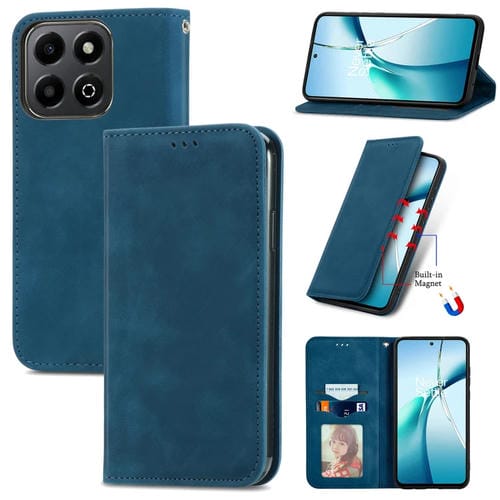 Funda de Cuero con Tapa Magnética y Tacto Retro para Honor 200 (Azul)
