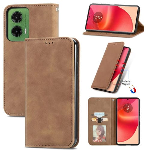 Funda de Cuero con Tapa Magnética para Motorola Moto G35 (Marrón)