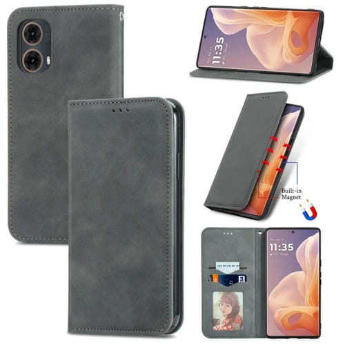 Funda de Cuero con Tapa Magnética para Motorola Moto G45 (Gris)