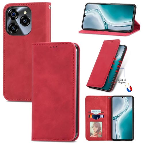 Funda de Cuero con Tapa Magnética y Tacto Retro para Oukitel C50 (Rojo)