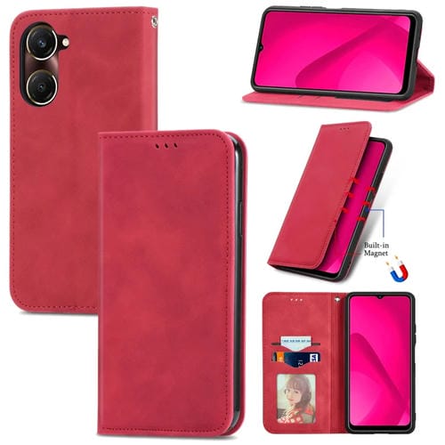 Funda de Cuero con Tapa Magnética y Tacto Retro para Vivo Y37 (Rojo)
