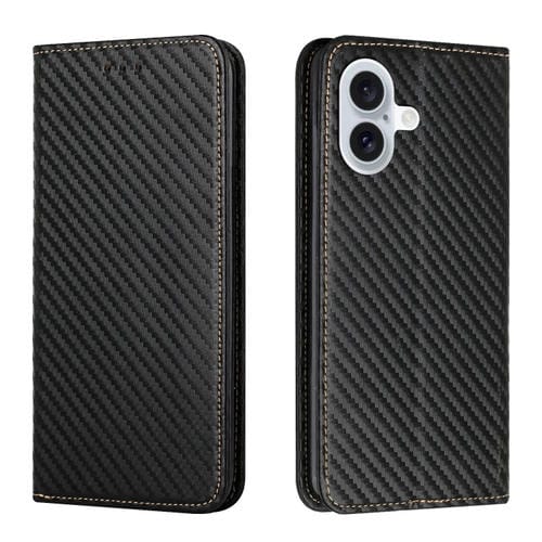 Funda de Cuero con Tapa Magnética y Textura de Fibra de Carbono para iPhone 16 Plus (Negro)