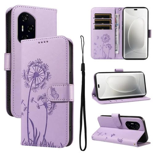 Funda de Cuero con Tapa para Honor 300 Pro/300 Ultra Diseño Diente de León (Morado)