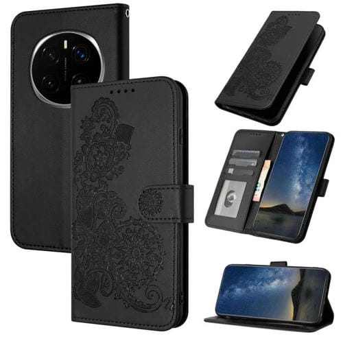 Funda de Cuero con Tapa para Honor Magic7 Pro con Diseño Flor de Datura en Relieve (Negro)