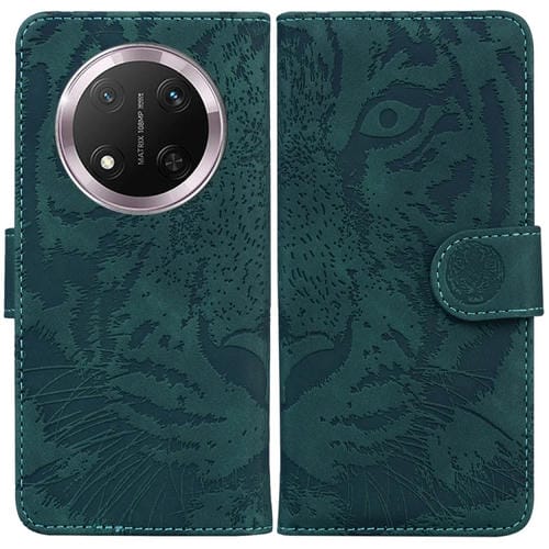 Funda de Cuero con Tapa y Estampado de Tigre para Honor X9C (Verde)