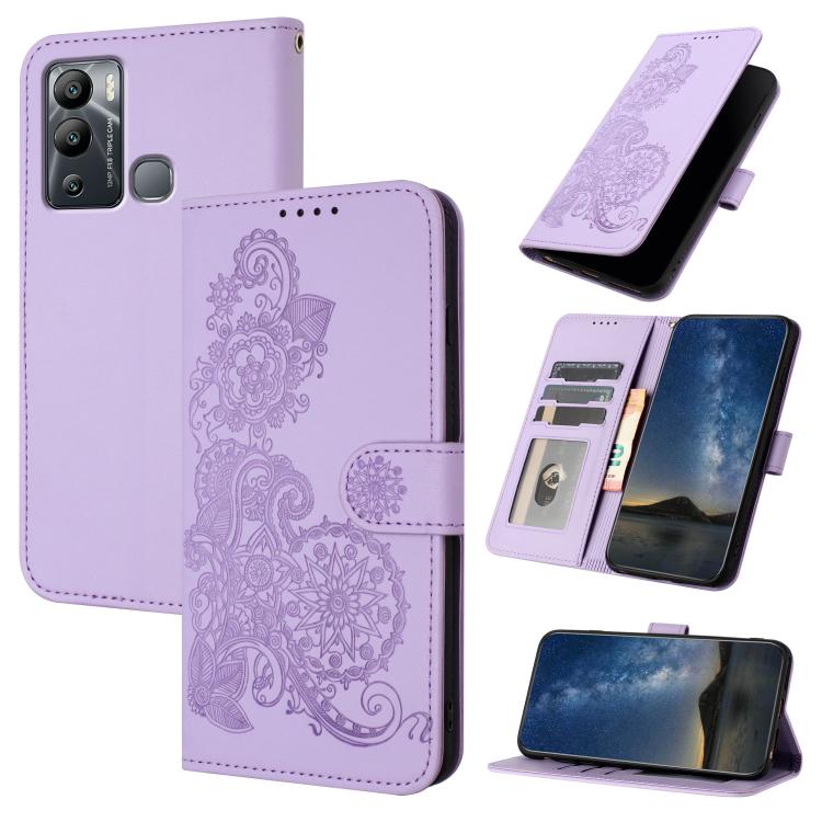Funda de Cuero con Tapa y Relieve Flor de Datura para Infinix Hot 12I (Morado)