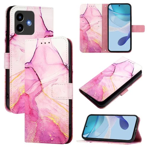 Funda de Cuero con Tapa para Cubot Note 40 Pt003 Diseño Mármol (Rosa, Morado y Dorado)