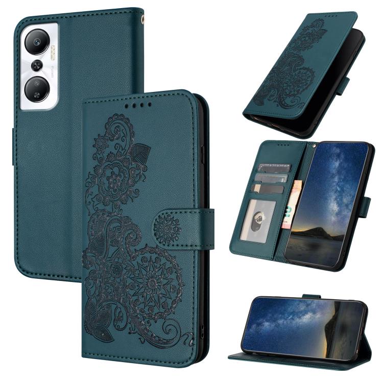 Funda de Cuero con Tapa para Infinix Hot 20 4G con Relieve Flor de Datura (Verde Oscuro)