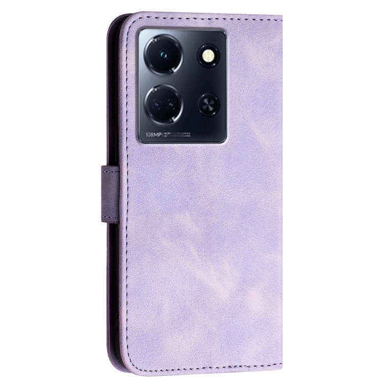 Funda de Cuero con Tapa para Infinix Note 30 5G Yx0080 con Diseño Mariposa y Cordón (Morado Claro)
