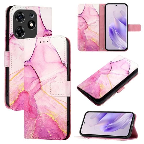 Funda de Cuero con Tapa para Teléfono Tecno Spark 10 Pro Magic Pt003 Diseño Mármol (Rosa, Morado y Dorado)