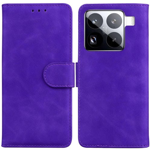 Funda De Cuero Con Tapa Para Xiaomi 15 Pro, Color Puro Y Tacto Suave (Morado)