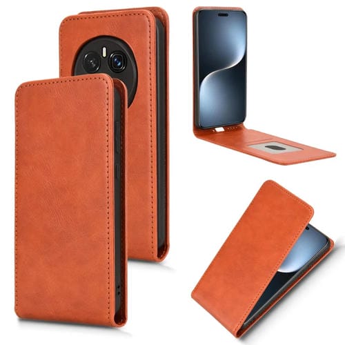 Funda de Cuero con Tapa Vertical Magnética para Honor Magic7 Pro (Marrón)