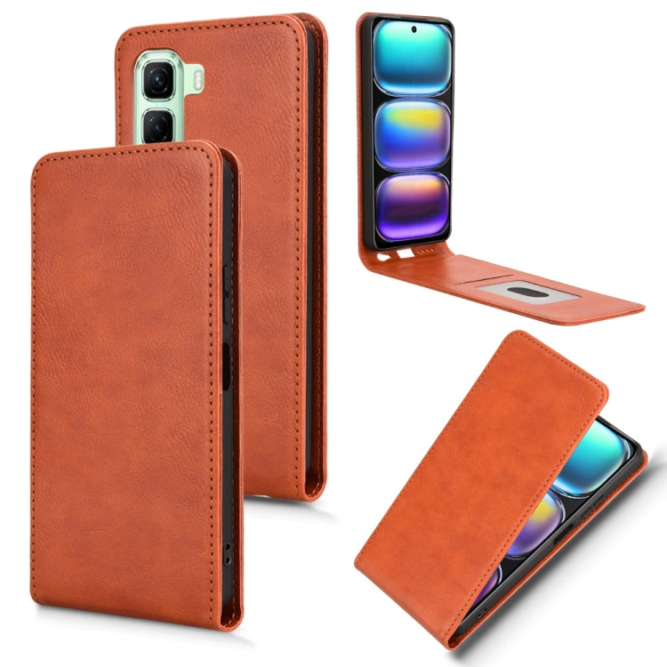 Funda de Cuero con Tapa Vertical Magnética para Infinix Hot 50 4G (Marrón)