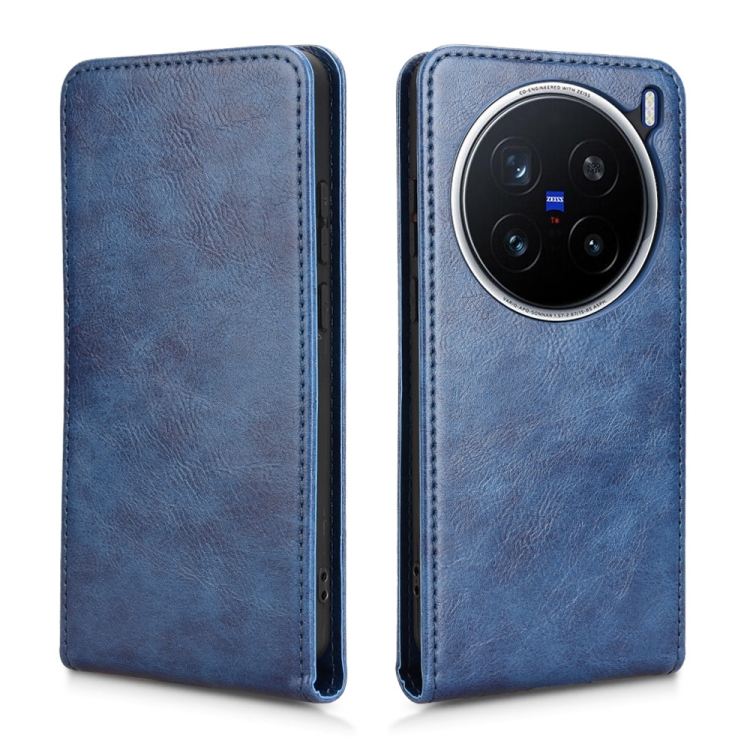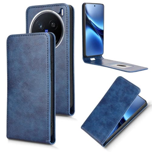 Funda de Cuero con Tapa Vertical Magnética para Teléfono Vivo X200 Pro 5G (Azul)