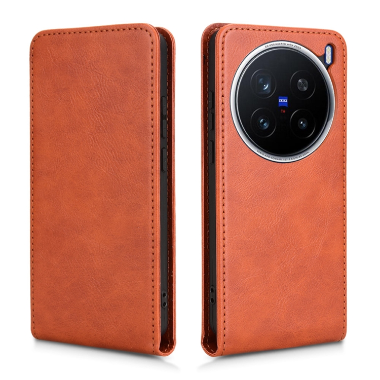 Funda de Cuero con Tapa Vertical Magnética para Teléfono Vivo X200 Pro 5G (Marrón)