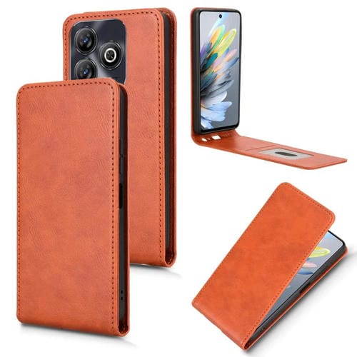 Funda de Cuero con Tapa Vertical Magnética para ZTE Blade A75 4G (Marrón)