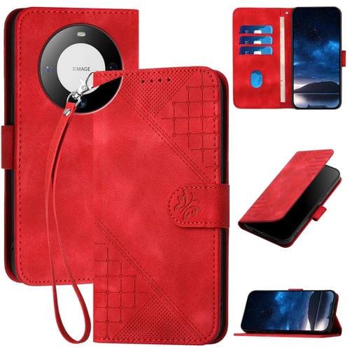 - 1x Funda de Cuero con Tapa y Cordón para Huawei Mate 60 Yx0080 con Diseño en Relieve (Rojo)