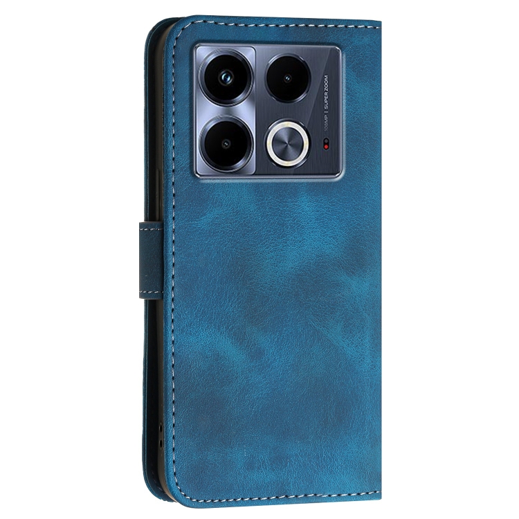 Funda de Cuero con Tapa y Cordón para Infinix Note 40 4G Yx0080 con Diseño Mariposa y Cuadrícula (Azul Oscuro)
