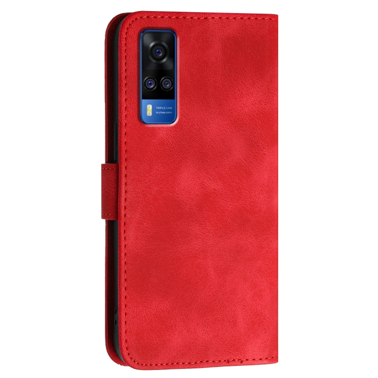 Funda de Cuero con Tapa y Cordón para Vivo Y53S 4G / Y51A / Y33 4G Yx0080 con Diseño En Relieve de Mariposa y Cuadrícula (Rojo)