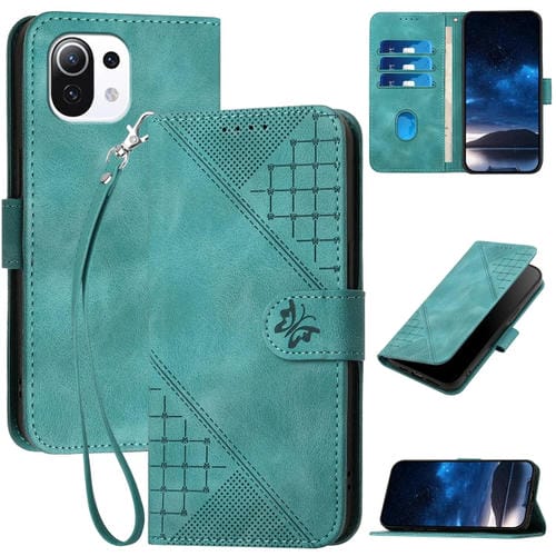 Funda de Cuero con Tapa y Cordón para Xiaomi Mi 11 Lite Yx0080 con Diseño de Mariposa En Relieve y Cuadrícula (Azul Claro)