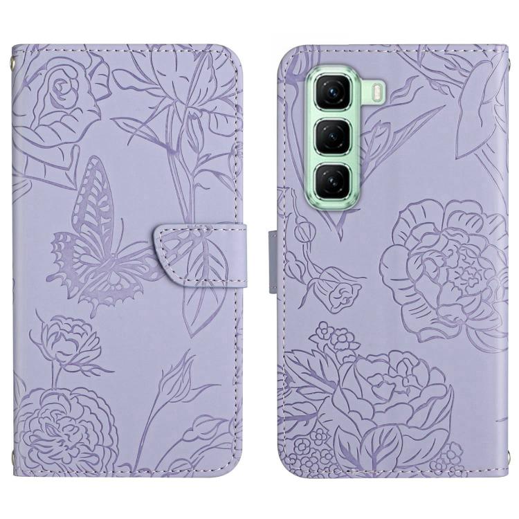 Funda de Cuero con Tapa y Mariposas En Relieve para Infinix Hot 50 4G (Morado)