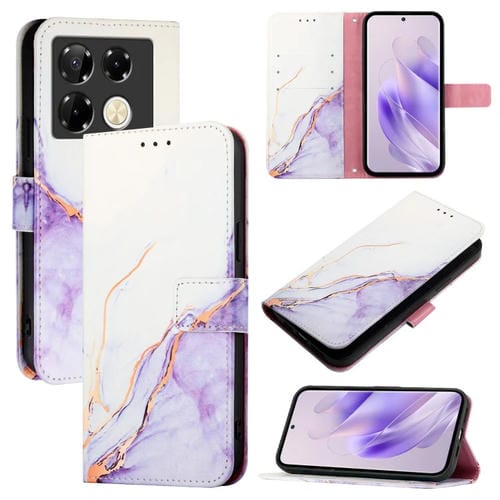 Funda de Cuero con Tapa y Diseño de Mármol para Infinix Note 40 Pro 5G Pt003 (Blanco y Morado)