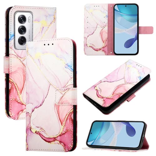 Funda de Cuero con Tapa y Diseño de Mármol para Oppo Reno12 Global Pt003 (Oro Rosa)