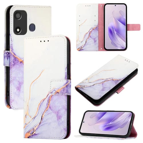 Funda de Cuero con Tapa y Diseño de Mármol para Teléfono Itel P17/A27 Pt003 (Blanco y Morado)