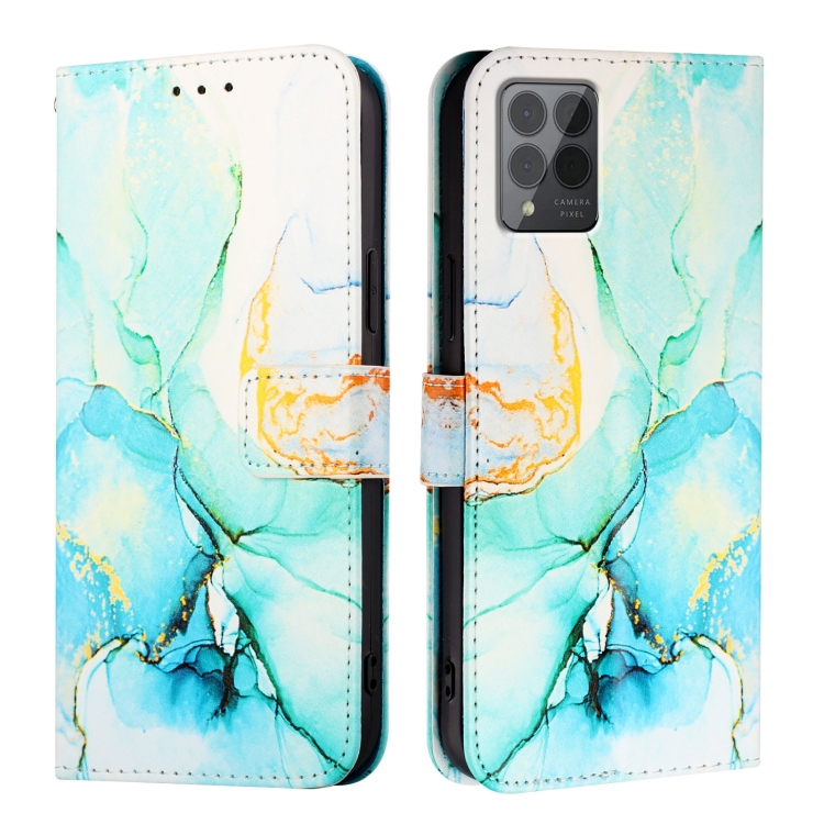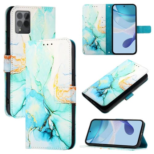 Funda de Cuero con Tapa para T-Mobile Revvl 6X Pro 5G Pt003 (Verde) con Diseño Mármol